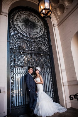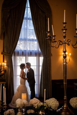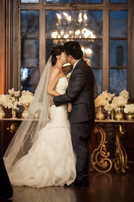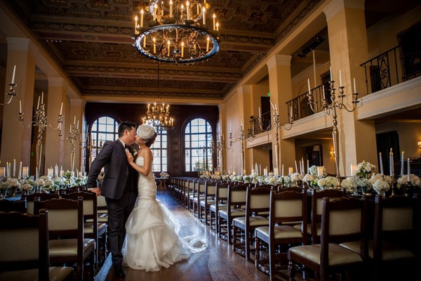 As Southern California is recently (and FINALLY) enjoying some winter-like weather, Daisy and Steve's all indoor winter wedding seems to be an appropriate event to feature. Held at the historic Ebell of Los Angeles, the wedding was styled to complement the amazing structure and ambiance of the venue. Lighting played an integral part in creating a vintage glamour vibe from start to finish.